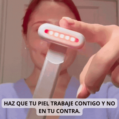 Dispositivo profesional con tecnología LED de 4 modos. Combina vibración de alta frecuencia y luz LED para estimular la producción natural de colágeno, reducir líneas de expresión y mejorar hasta un 300% la absorción del sérum.